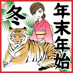 大きいサイズで気持ちもぐっと伝わる、新年のご挨拶や冬に使えるおかみさんスタンプです♪ 敬語・大人・着物・正月・2022・和 ※このスタンプはトークルームで大きく表示されるBIGスタンプです。滝永さるり(イラストレーター) より発売