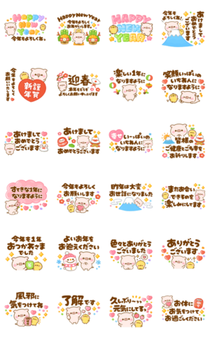 年末年始が賑やかになる素敵なスタンプです。とっても可愛らしいですね。