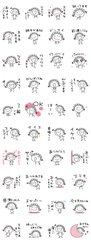 ポジティブ⭐︎くるりぼんは、ほんわかとした癒し系のイラストにポジティブな文字がついていて気軽にどんな人にも使えます