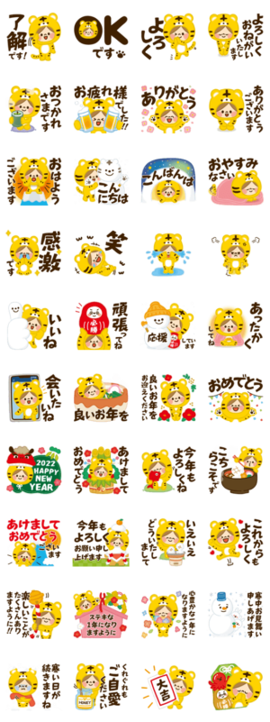 2022年のスタンプです。虎バージョンで黄色一色!って感じです☆
