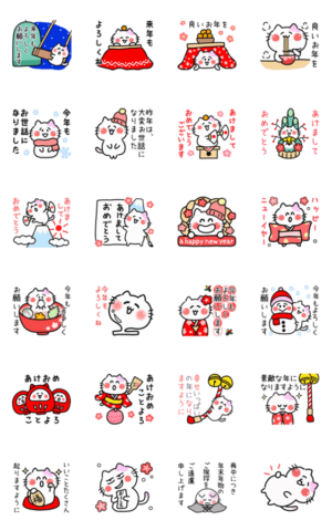 にゃころんの年末年始スタンプです。ネコだから毎年使えます。