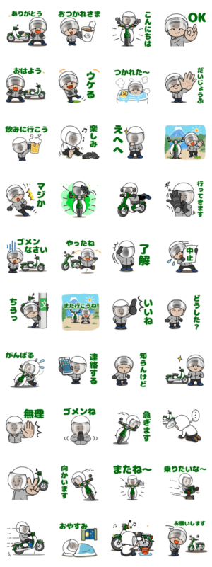 オシャレバイク男子 挨拶 NO.17 グリーン スタンプ画像一覧