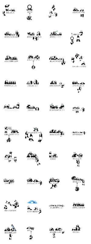 よく使う言葉にパンダがまみれるスタンプです。敬語にもまみれます。ブルースブルース より発売
