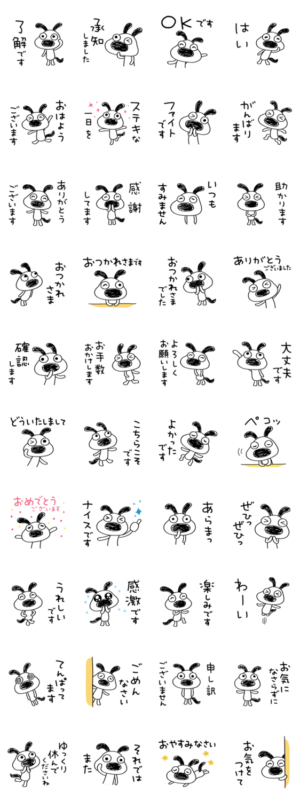 犬のバウピースタンプです。ゆるいイラストですがちゃんと敬語を使っています。