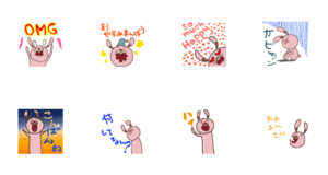 私が中学生の時にふざけて書いたうさぎをスタンプにしました。 これらはお絵かきアプリにて手書きで作成しました。はむりん より発売