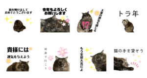 今年の運気をあげる正月用の猫スタンプ。猫は縁起の良い動物である。商売繁盛で有名な招き猫などがいい例である。yoshinori kikuchi より発売