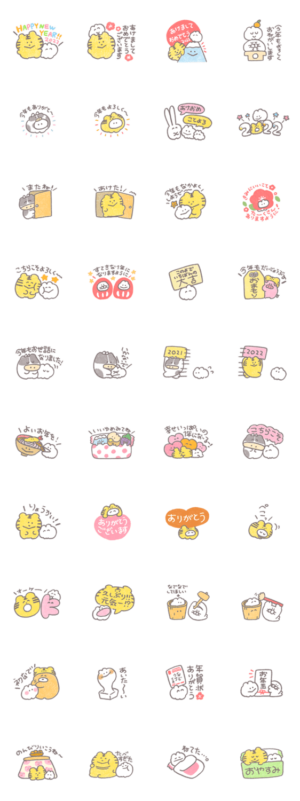 なでなでしてほしいウサギとなかまたちの年末年始スタンプです!もくもくちゃん より発売