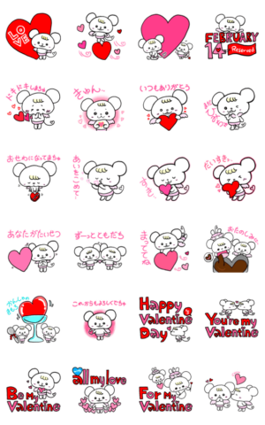 かわいいねずみの幸せいっぱいバレンタイン スタンプ画像一覧