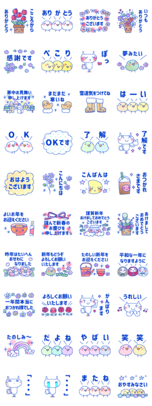 感謝を込めて贈る大人かわいい40個。年末年始、新年のご挨拶、日常よく使う言葉など、気持ちが伝わるシンプルなスタンプになりました。大きな文字、敬語多めで便利です。Konko3 より発売