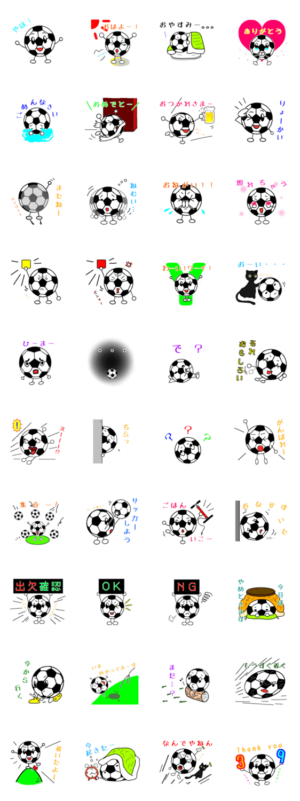 サッカーボールのかわいいスタンプです。普段の会話で使えるものを集めました。For all footballer.