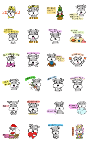 ミニチュアシュナウザーの年末年始スタンプ♪お正月や冬の挨拶に◎まー より発売