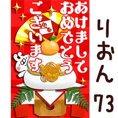 りおん/リオン専用73。正月/お正月/年賀状/動く/敬語/あけおめ/年末年始/喪中/ねことうさぎの名前スタンプ/山田まぽん作。※他の名前は「○○専用73」で検索★山田まぽん 新 名前スタンプ より発売