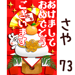 るか/ルカ専用73。正月/お正月/年賀状/動く/敬語/あけおめ/年末年始/喪中/ねことうさぎの名前スタンプ/山田まぽん作。※他の名前は「○○専用73」で検索★山田まぽん 新 名前スタンプ より発売