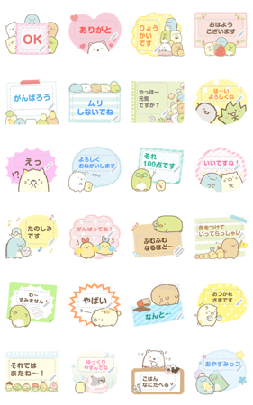 すみっコぐらしのメッセージスタンプが登場♪たくさんのすみっコたちのメモや付箋型のかわいいデザインのスタンプだよ!