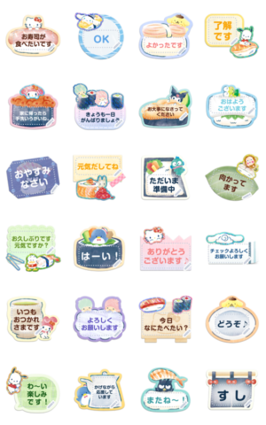 サンリオキャラクターズのキュートなお寿司型メモのメッセージスタンプが登場!自由にテキストを変更して、家族やお友だちとのコミュニケーションに使ってね♪