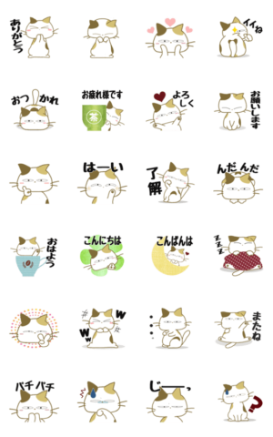 みけ猫みけさんの動くスタンプです!シンプルで万能に使えます♪まちゃの部屋 より発売