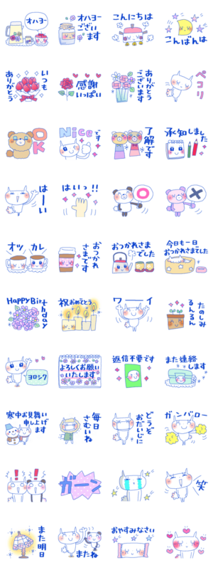 ちょっとレトロな雰囲気でファンシーなうさきゅんスタンプ40個。シンプルで見やすい大きな文字。サクっと送れる大人のやさしいスタンプです。Konko3 より発売