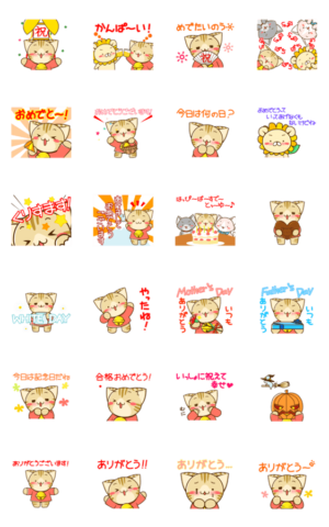 すずにゃんのいろんなお祝いメッセージスタンプですおりーぶりーぶ より発売