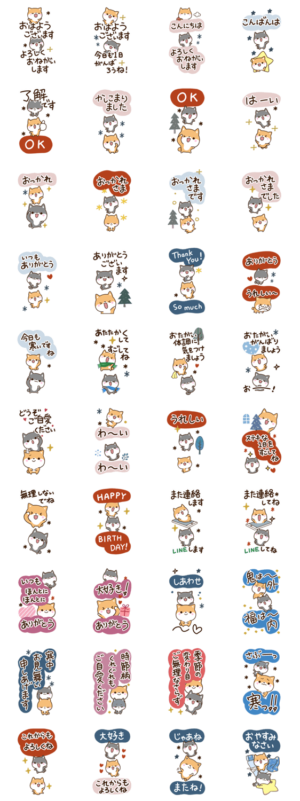 『ちびシバ』と『ちびクロシバ』の冬に使えるビッグなイヌスタンプです。寒中見舞いも含めた、しばいぬスタンプ。毎年使える便利な柴犬スタンプです。【かたこ】 ※このスタンプはトークルームで大きく表示されるBIGスタンプです。かたこ より発売