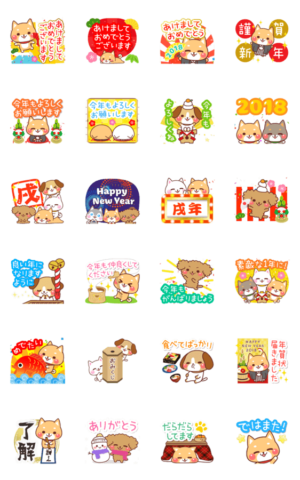 2018年の正月に使える戌年のスタンプ!新年の挨拶も入っているので年賀状代わりにどうぞ♪Miho Kurosu より発売
