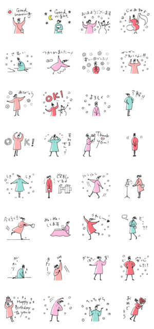冬のシンプル日常スタンプ。友達のお誕生日やいつものあいさつ、お出かけ先で、大人も女子も毎日使えるかわいい基本セット。