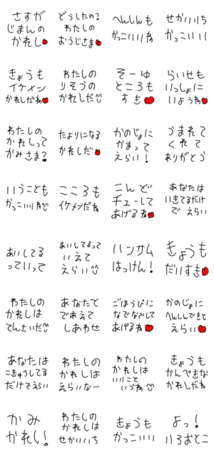彼氏を褒める、こどもの字スタンプです(/・ω・)/CUTE♥