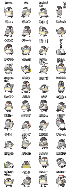 文鳥様のスタンプです。 ※このスタンプはトークルームで大きく表示されるBIGスタンプです。たたら より発売