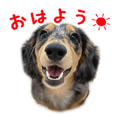 とっても表情豊かなミニチュアダックス(シルバーダップル)のノエルくんの犬写真スタンプです。