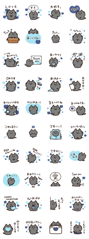 青いハートと気持ちを伝える黒猫ちゃん スタンプ画像一覧
