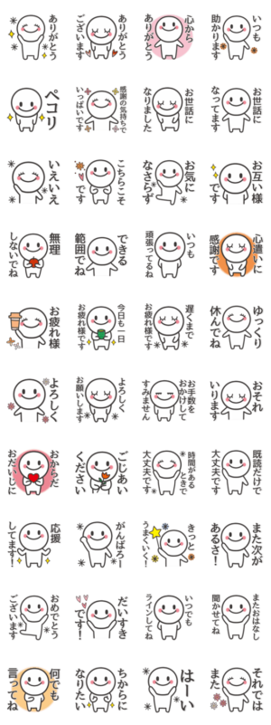 相手に気持ちが伝わる、シンプルで優しいスタンプです。感謝や気遣いの言葉がいっぱいです♪HRYs より発売