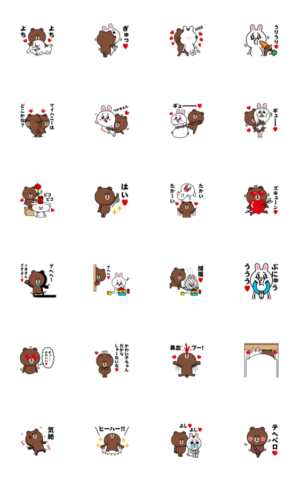 ブラウン/コニー/LINEキャラクターズ/毎日使える/日常会話/挨拶/大人向け/恋人/アベック/カップル/ラブラブ/好き/両思い/愛/男女/彼氏彼女/ ※BROWN & FRIENDS をみんなでつくろう!キャンペーン参加スタンプです4A-Studio(よんえーすたじお) より発売