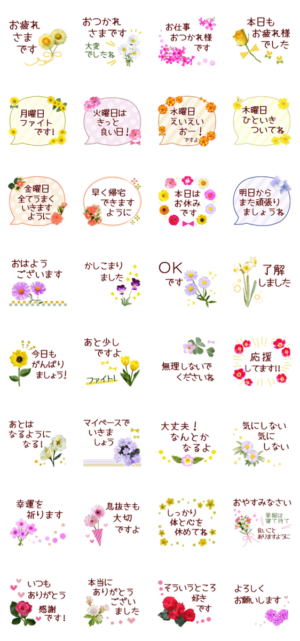 花の一週間がんばりましょう*毎日使える スタンプ画像一覧