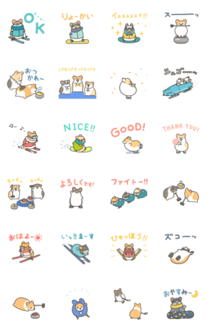 冬のスポーツを満喫するコーギー犬の動くスタンプです。スキー・スノーボード・フィギュアスケート・カーリング、冬のレジャーにコギの成分が欲しくなったらお使い下さい。