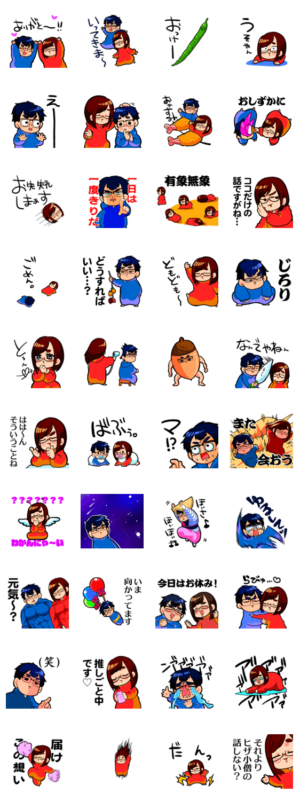 絵描き兼ゲーム実況者夫婦「なつめさんち」のLINEスタンプ!友達に、家族に、なんとなく送りつけてみてください。なんとも言えない空気が流れる事でしょう…