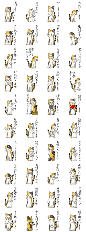猫の敬語スタンプです。 ※このスタンプはトークルームで大きく表示されるBIGスタンプです。たたら より発売