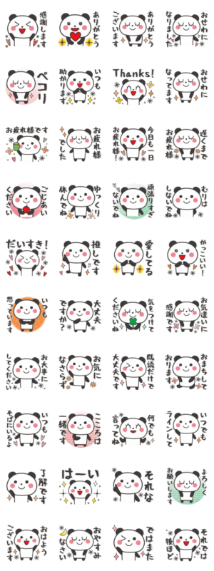 相手にきもちが伝わる、可愛いぱんだのスタンプです。感謝や気遣いなど、優しい言葉がいっぱいです。HRYs より発売