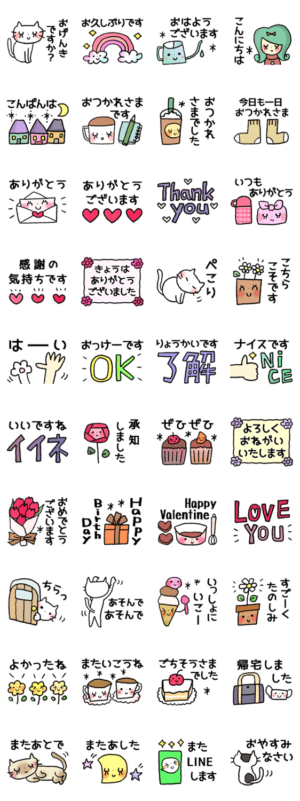 文字が大きくて見やすい、シンプルで大人かわいい40個。感謝の気持ちと敬語多めで使いやすい毎日便利なスタンプです。気持ちが伝わるやさしくてスマートなセットです。Konko3 より発売