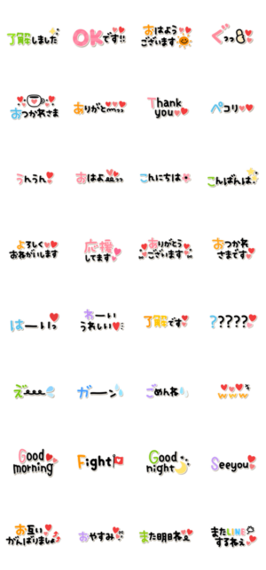 毎日使える手書き文字♡カラフル省スペース スタンプ画像一覧