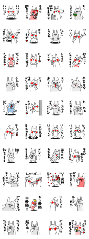 全力でうざい全力でおちょくるあざとかわいいうさぎがバブルでも死語でもないのに古臭い。ポーズもなんだか古臭い。今・・・令和だよ?と言われるかもしれないスタンプ登場