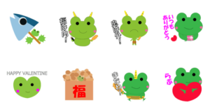 ゆるい蛙の2月のスタンプです 節分&バレンタインデーkyo より発売