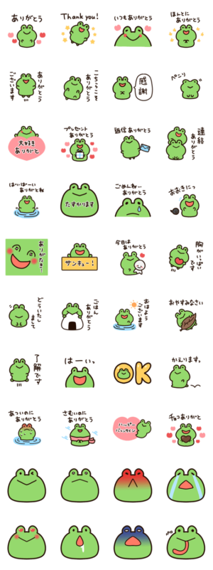 「ありがとう」を伝えるカエルちゃん スタンプ画像一覧