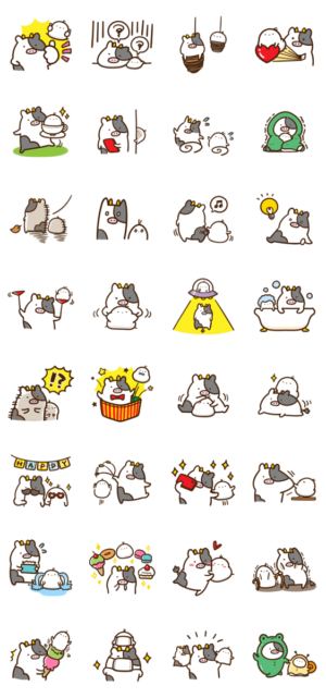 ありそうでなかったちょこうし&もちエナガのコラボスタンプです。文字なしなので直感的にいろんな場面で使いやすい♪:かわいい、ゆるい、シンプル、動物、牛、シマエナガ