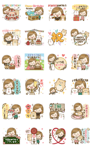 飛び出す*大人かわいい主婦*誕生日&お祝い スタンプ画像一覧