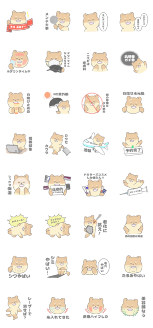 ニコニコ笑っている柴犬のスタンプです。美容の意識が高い方、肌管理ガチ勢の方は是非使ってください。のん より発売
