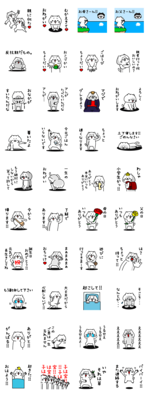 全力でうざい全力でおちょくるあざとかわいいねこの子ども心が爆発!お母さんやお父さんやおじさんにおばさんにじじにばば。あらゆる年上に娘や息子気分で送れるスタンプ。