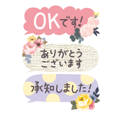 省スペースの小さい吹き出しにかわいいバラのスタンプ 敬語で返信に使いやすいohkuwa aya より発売