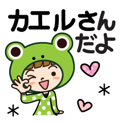 カエルのかぶり物した大人かわいい女子の毎日使えるスタンプ♪親切で丁寧な言葉♪ KEN graphic