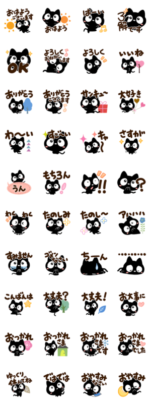 シンプルで優しい大人の黒猫スタンプです。日常よく使うあいさつ等を集めました。ちいさくて、かわいいくろねこ好きな方にぜひ。【かたこ】かたこ より発売