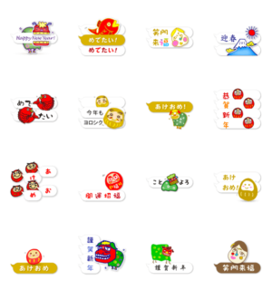 新年・謹賀新年・年賀・正月などをイメージしたイラストの あけおめメール用 動くスタンプです。