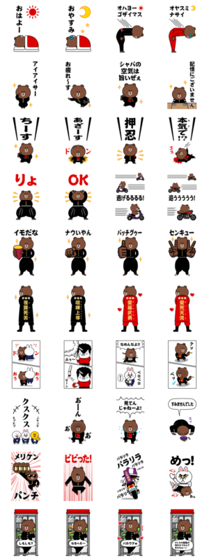 ブラウン/コニー/サリー/ムーン/LINEキャラクターズ/不良/番長/暴走族/ツッパリ/マイルドヤンキー/昭和死語/80年代/レトロ/四字熟語/日常会話/毎日使える/ヤンキーにゃんこ ※BROWN & FRIENDS をみんなでつくろう!キャンペーン参加スタンプです4A-Studio(よんえーすたじお) より発売